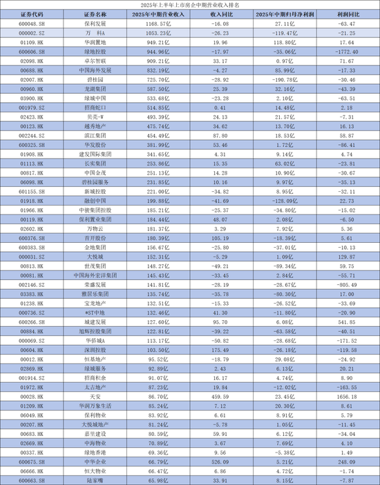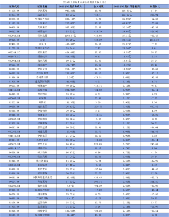 2025年上半年净利润超过10亿元的房企还有龙湖集团、保利发展、贝壳、华润万象生活、滨江集团、招商蛇口、越秀地产、中国金茂等。